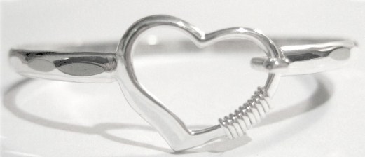 Beautiful hand made in sterling silver with silver wrap or 10k wrap. The heart is cast separately and then soldered to the bracelet. A 4mm wide hammered band allows for light reflection that enhances its eye catching effect.